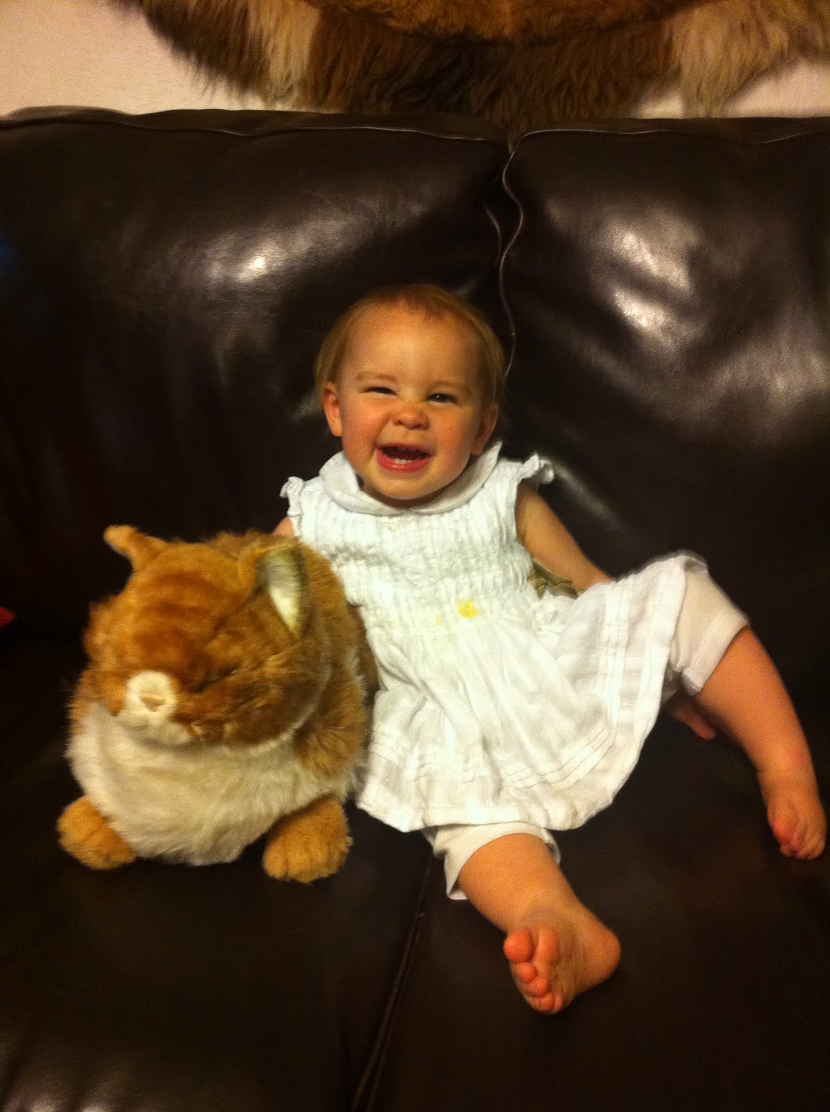 This cat at Madee & Papa's keeps creeping us all out. It looks WAY too real. We think that's why Genevieve likes it so much! She loves snuggling on it!